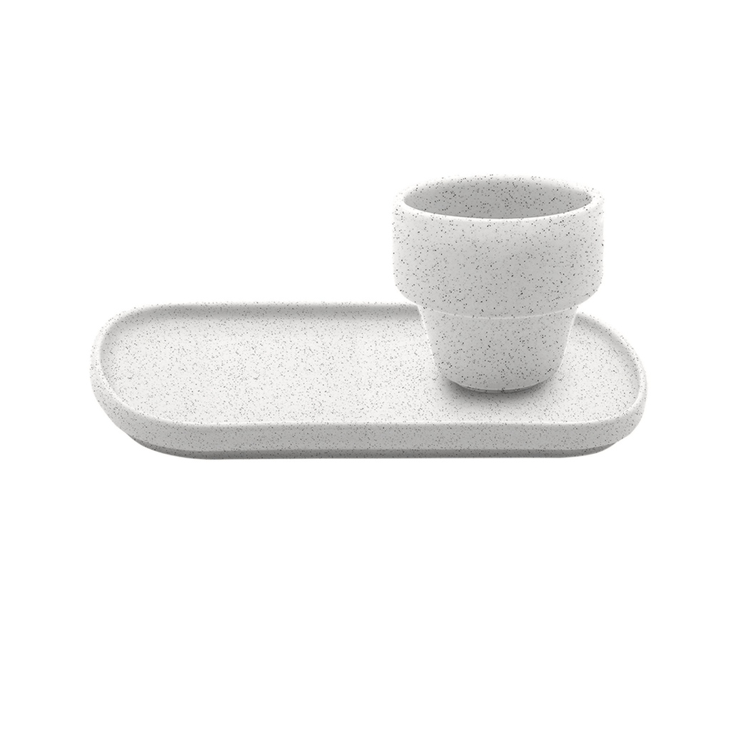 The Elo collection unites functionality and beauty in the same pieces. The name that baptizes this new model refers to the connection between each piece: all items are stackable and fit together taking up less space. The shape of the pieces is an invitation to let your imagination run free with the most diverse possibilities of product use. The decoration of each piece comes from the art of producing ice cream, a specialty of Italian ice cream makers. The vanilla flavour gives origin to a delicious cream, light in colour and with small dark points. The colour resembles vanilla and embellishes the Elo Vanilla collection. The beige shade with dark spots in a satin finish forms a modern combination for all tastes.